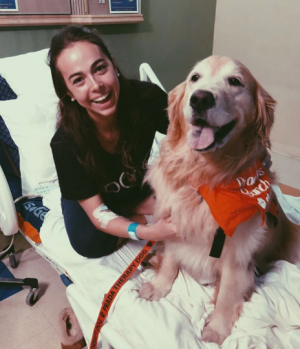 In November of 2017, I was re-diagnosed as Crohn’s disease, and I was told that I needed to begin a stronger treatment. As I prepared to start on a biologic, I needed to begin taking steroids to reduce the inflammation in my gut. I remember the anxiety that was very present during this time - never in my life had I felt so out of sorts. I had body shakes, my hands wouldn’t stop trembling, and I spent mornings and evenings crying on my bedroom floor for seemingly no reason. To be quite honest, I didn’t know what was happening to me. One morning, I woke up in tears. I felt so empty and confused, frustrated at the lack of control I had over what was going on in my life. At that moment, my dog, Chloe, came to my room. She comforted me in a moment when I most needed support. She provided this support that I didn’t know I needed and allowed me to breathe and relax. Slowly but surely, I was able to begin my infusion treatment at the hospital. The first few times I arrived at the hospital, I stressed out about getting an IV. One time, the nurses couldn’t get my vein and needed to try a few times to insert the needle. I remember they brought in a dog, Bella the Beagle, who sat at my bedside and comforted me. Allowing my focus in an incredibly stressful situation be directed to a puppy brought me ease and reminded me that I could control my mind and my anxiety.