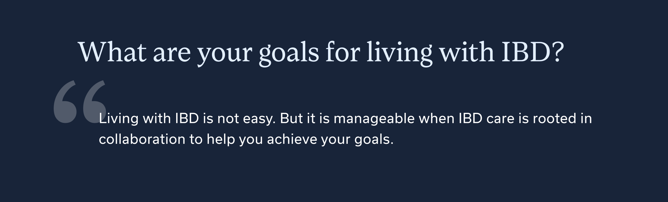 Living with IBD is not easy. But it is manageable when IBD care is rooted in collaboration. Having a team of specialists from diverse fields working together can help you achieve your goals and live your life fully.