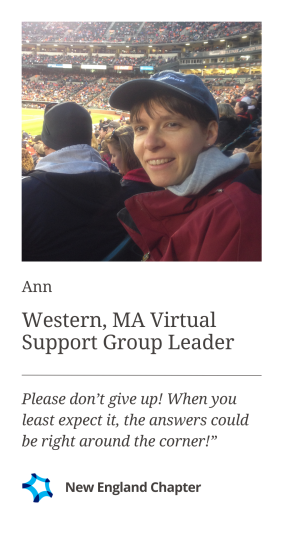 Ann says that her group feels like a family and welcomes new people with open arms. Her group has also grown in size over time which is exciting. Since COVID hit and her meetings became 100% virtual, she likes that people living throughout New England can join any support group at this time including the one she runs.